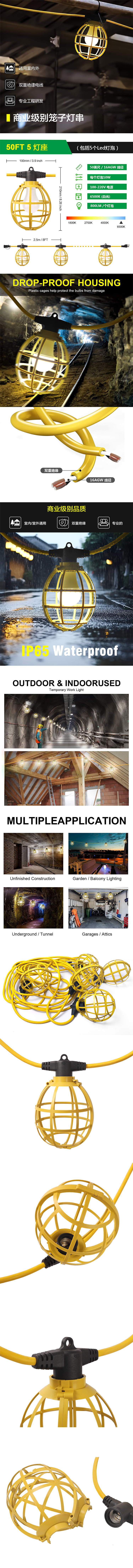 建筑灯串户外延长线安全盖工作灯IP65防水车间矿井洞穴