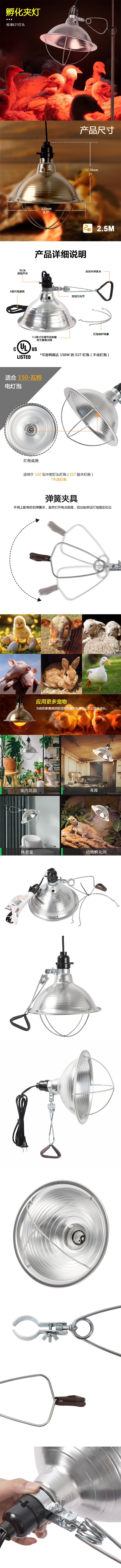 8.5英寸铝制家禽和爬行动物Brooder灯,带夹式灯泡护罩悬挂钩照明解决方案